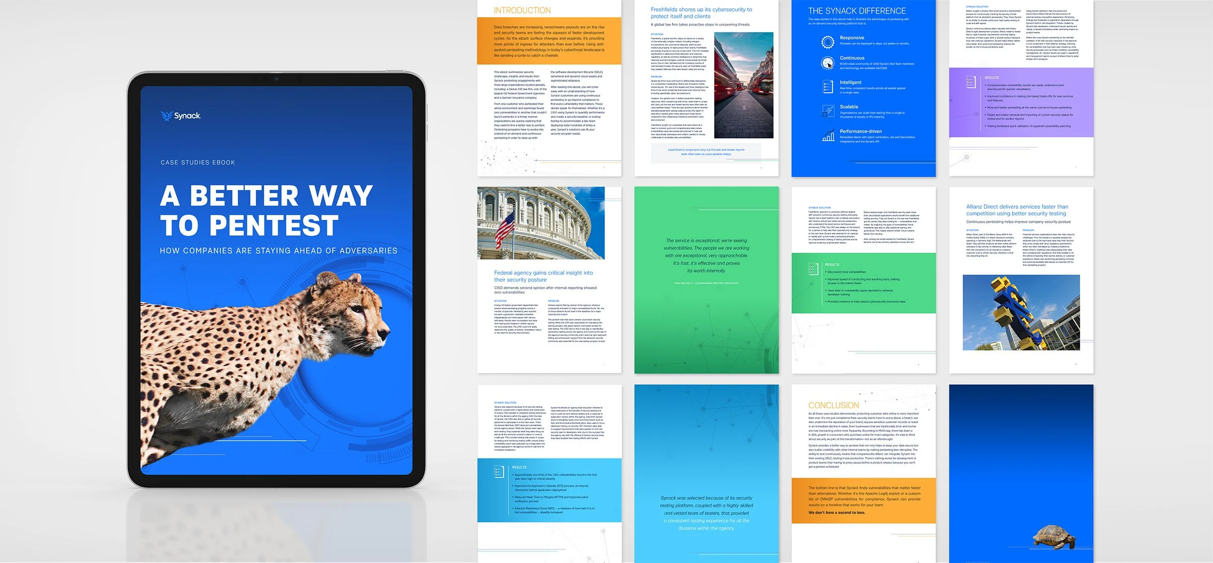I was inspired by the metaphor in the white paper content: Traditional pentesting is like a turtle chasing a cheetah. The visual concept resonated well with the content creators. This phrase became the white paper’s title and subtitle.